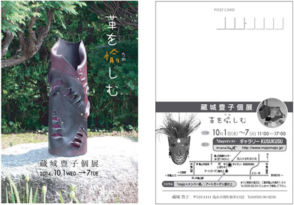 オブジェや仮面、そして日常で使える革の小物を展示いたします。
