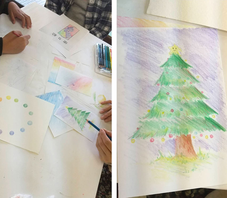 水彩をベースに、パステルや色鉛筆等も使い、それぞれの個性溢れる素敵な作品が仕上がりました。