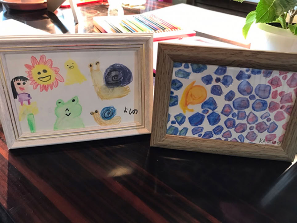 淡い色の重ね方などをアドバイス。出来上がった作品は額装しました。