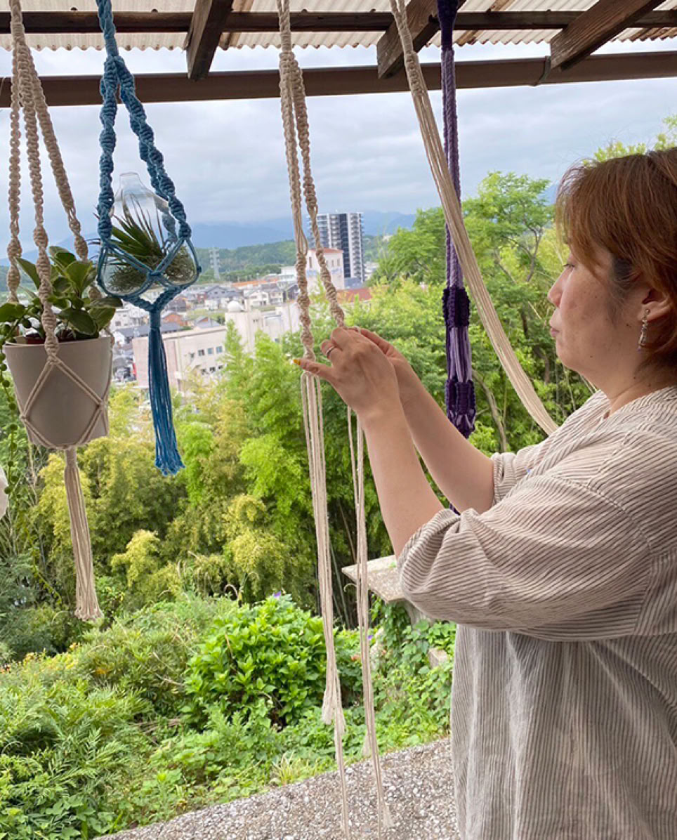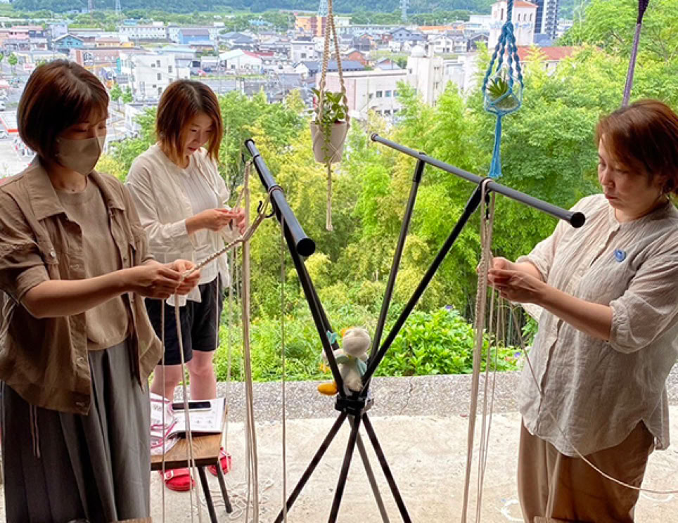 マクラメ編みは初めてという方々にグリーンを吊るすプラントハンガーを編んでいただきました。