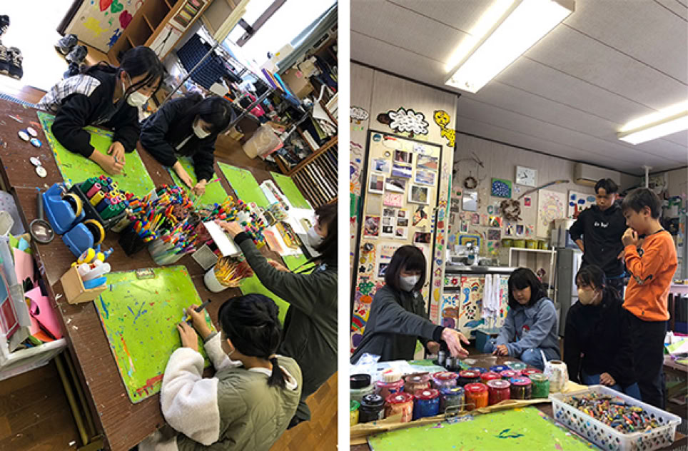 初めての画材に戸惑いながらも、徐々に素敵な絵になってくる過程を味わっていただき、