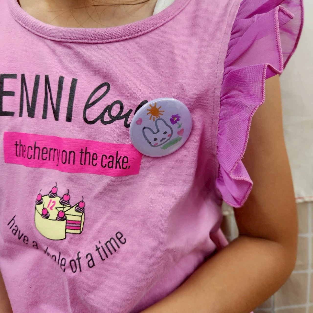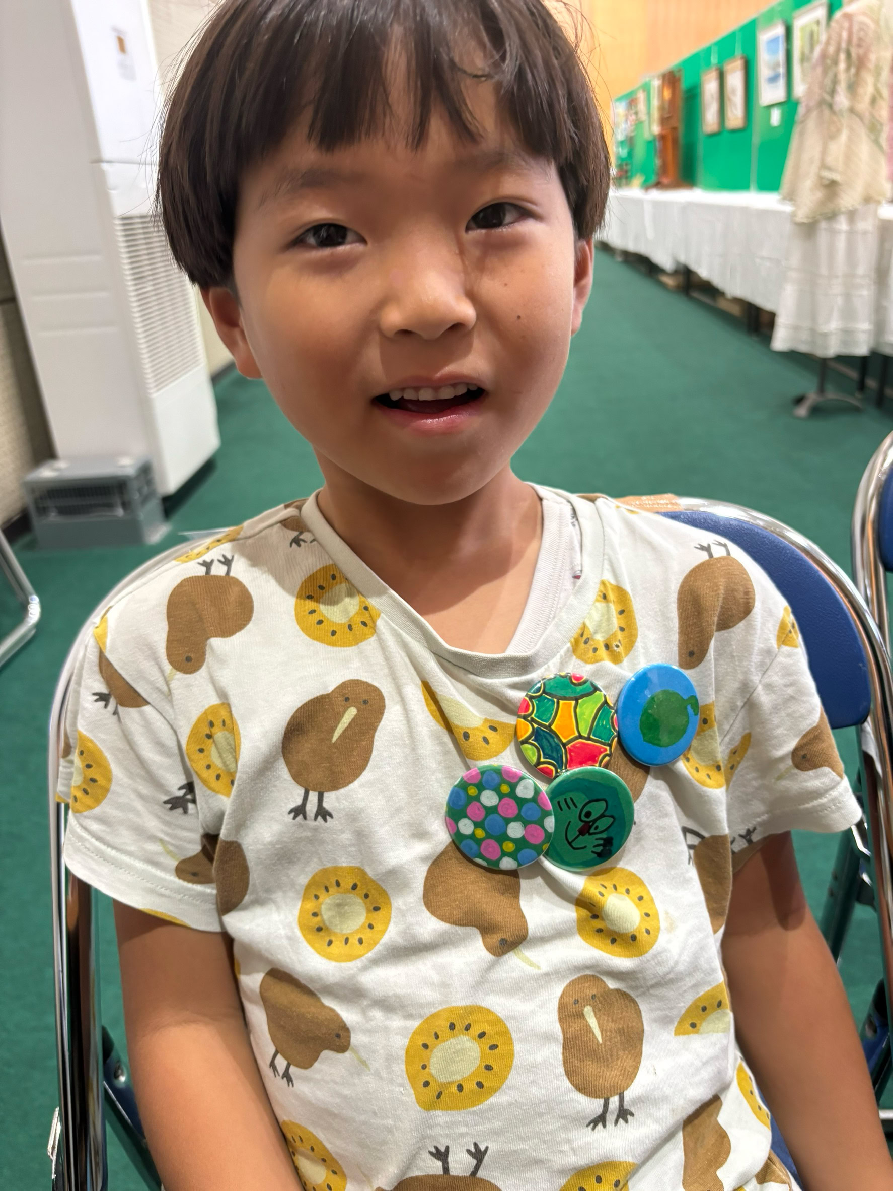 描いた絵が缶バッジになる瞬間を目の当たりにして「すごい」と大喜びでした。