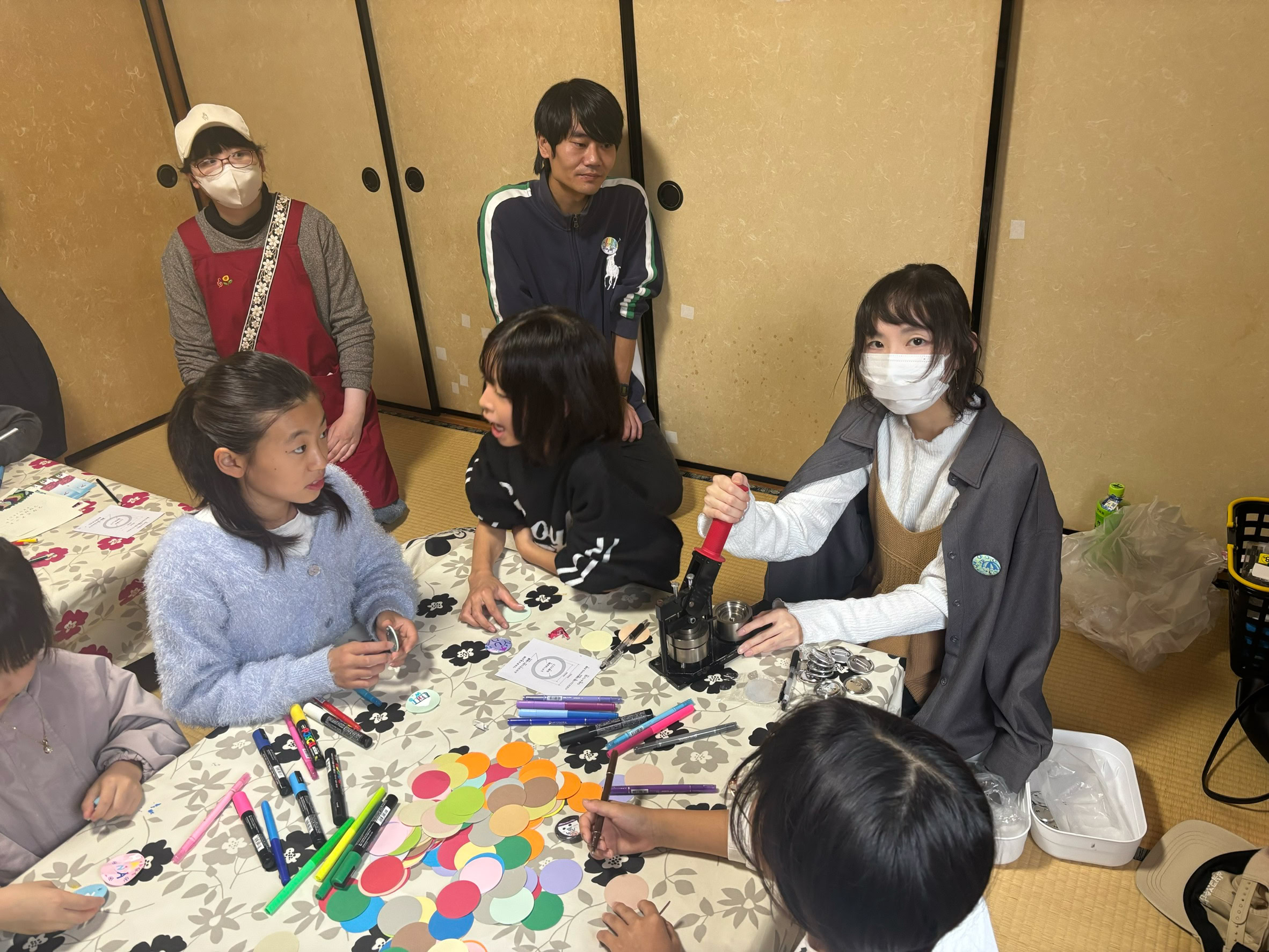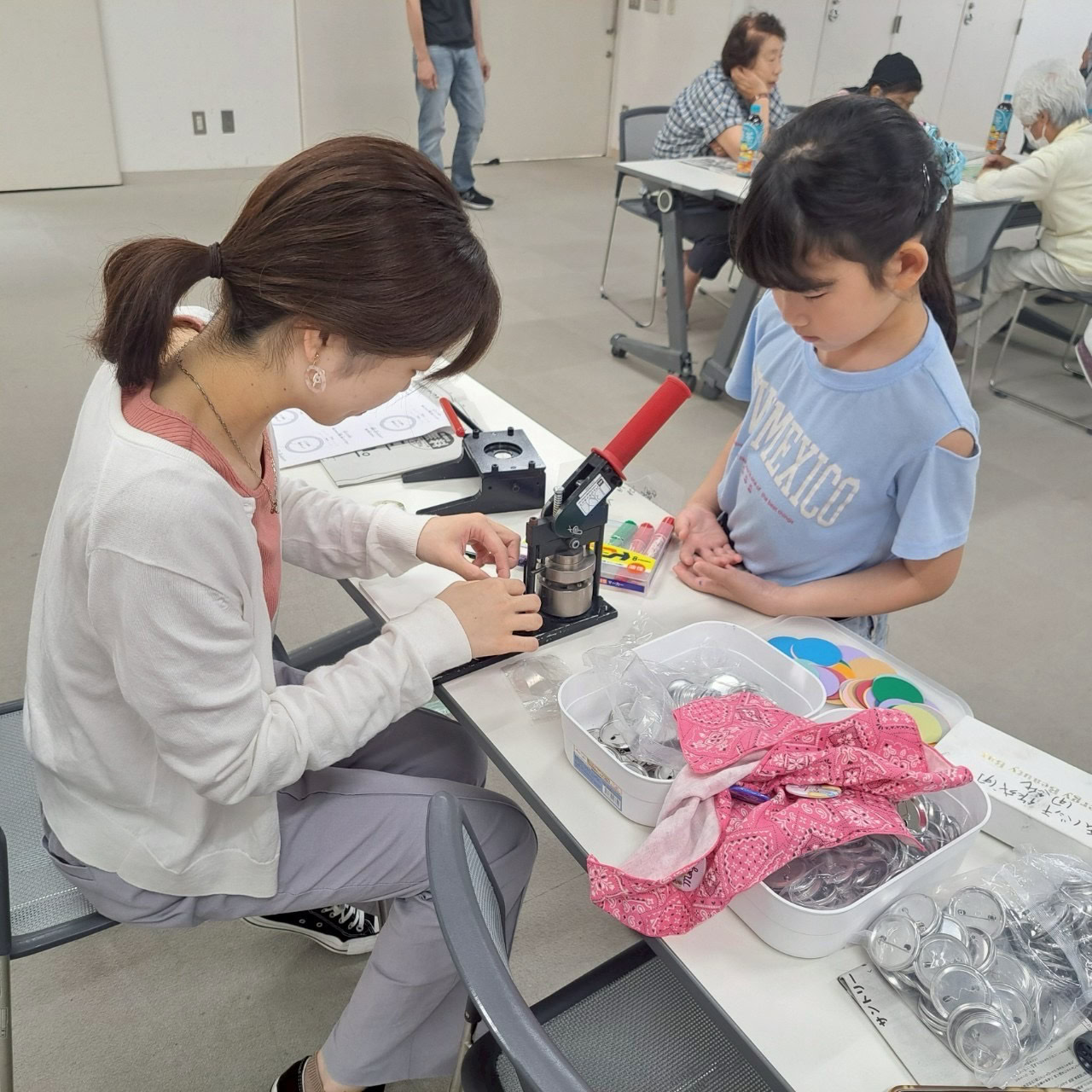 3世代の交流会として老若男女問わず、たくさんの方に缶バッジ作りを楽しんでいただきました。