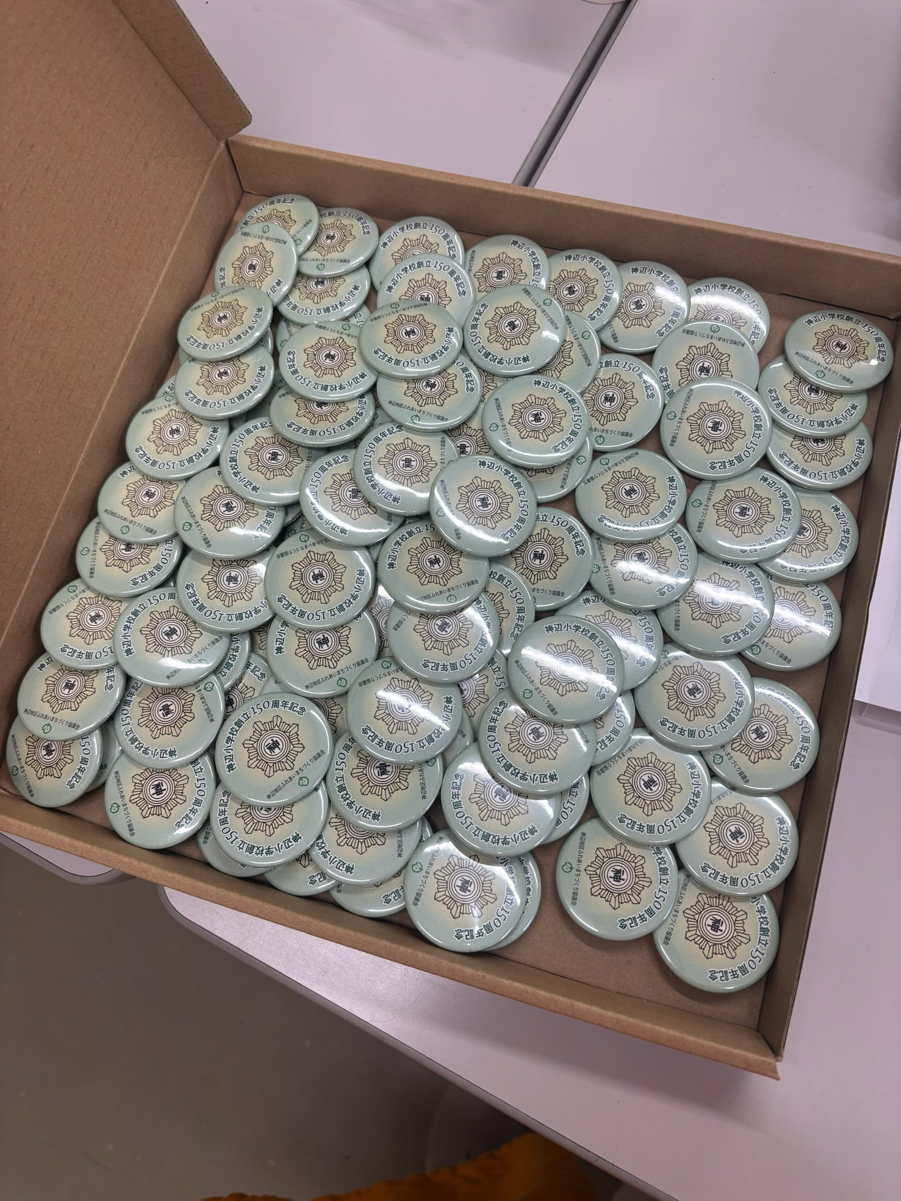 亀山市立神辺小学校創立150周年記念の缶バッジ作成を依頼されました。