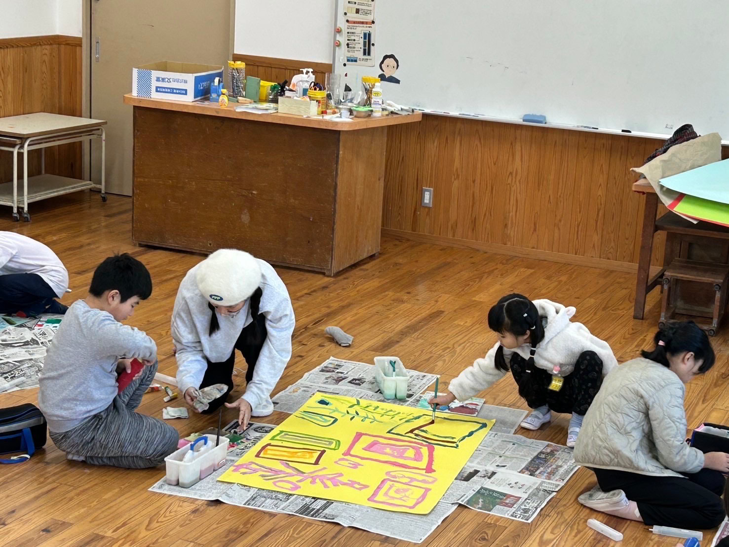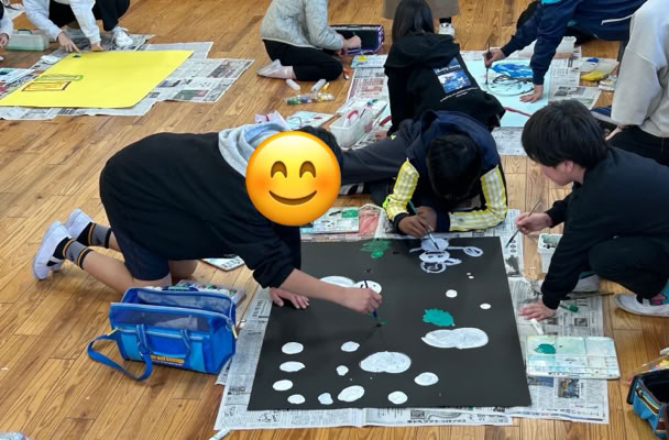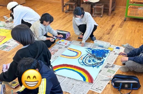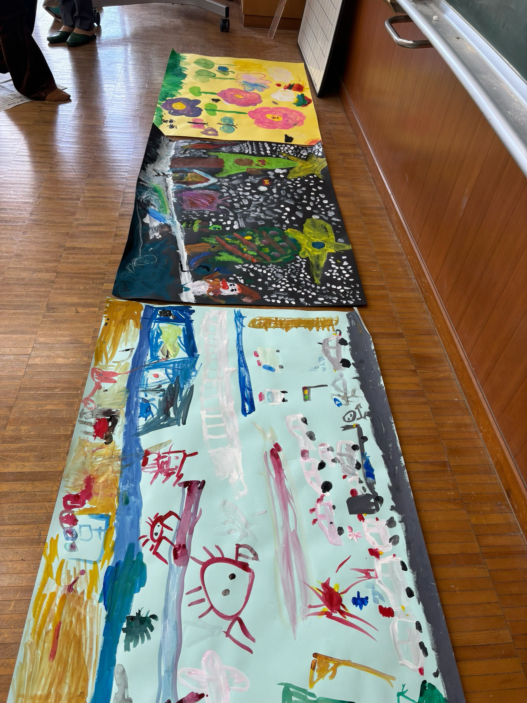 みんなで描いた共同作品、教室に展示してくださいね。