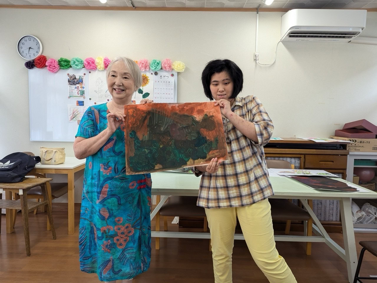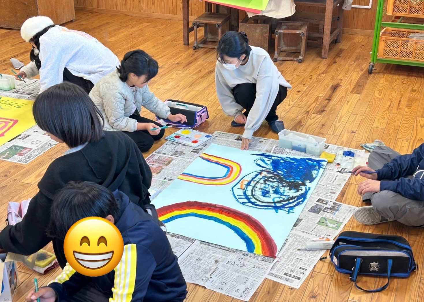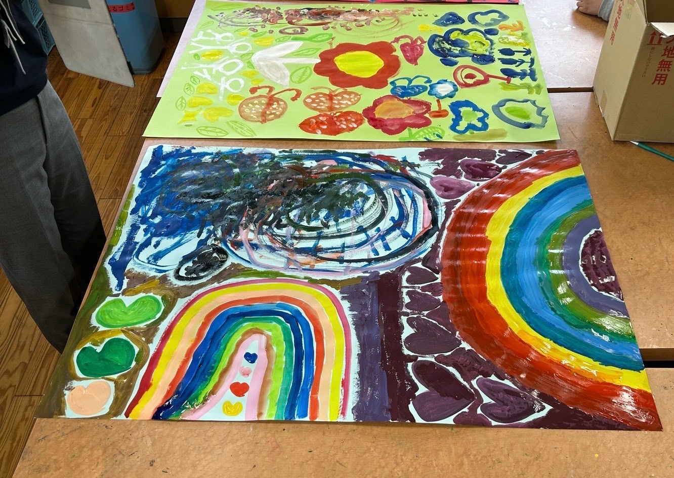 みんなで描いた共同作品、教室に展示してくださいね。