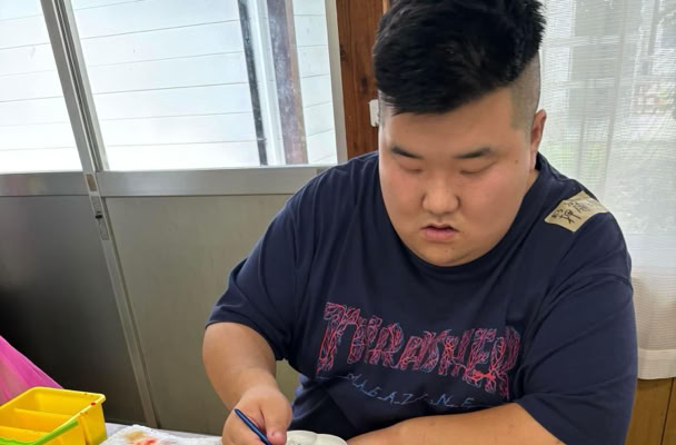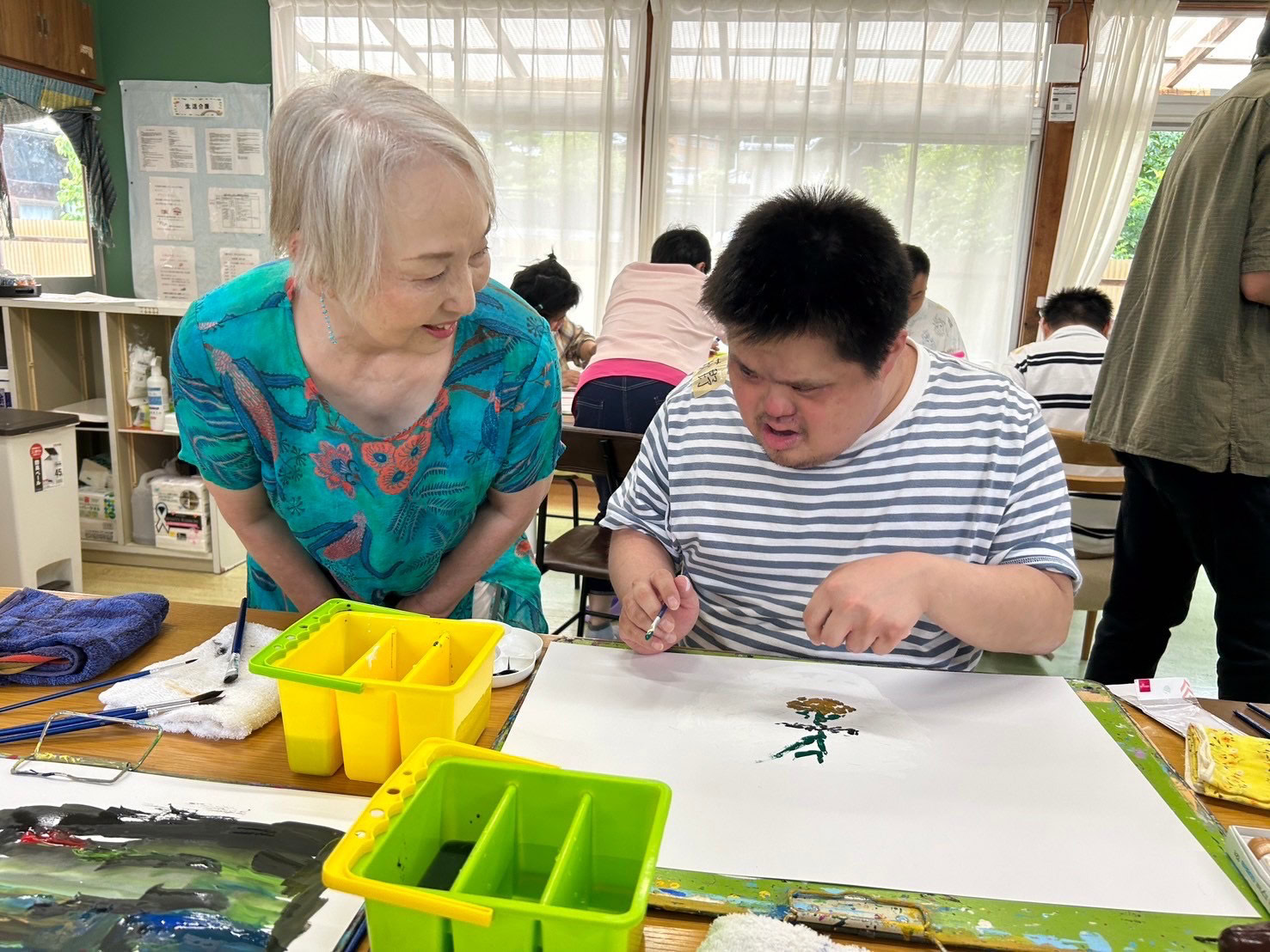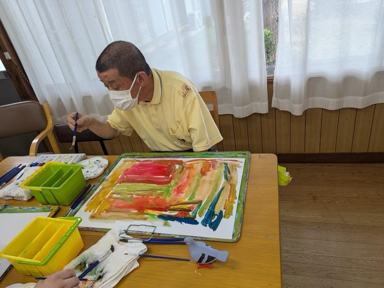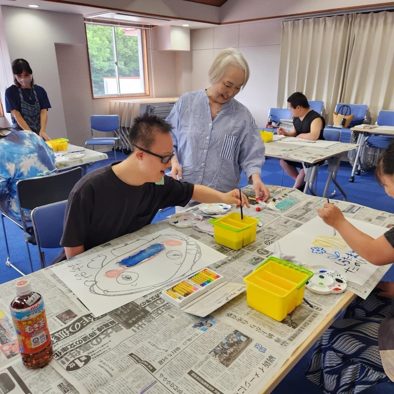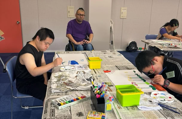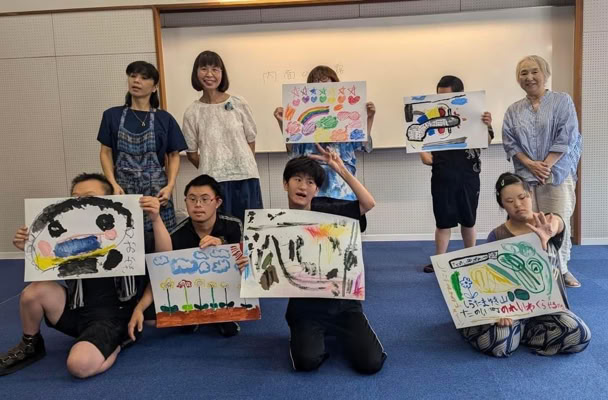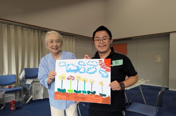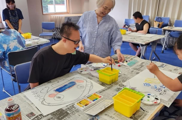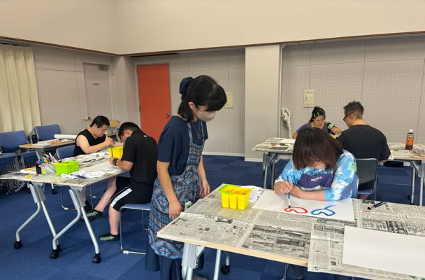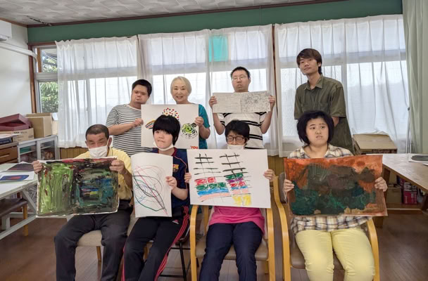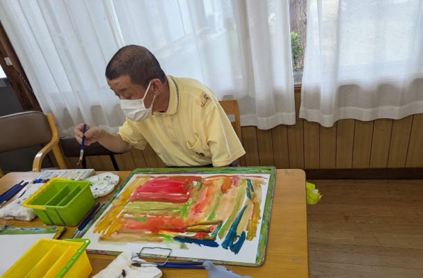 指定福祉サービス事業所「工房えがお」の利用者の皆さま8名と絵画制作を楽しみました。