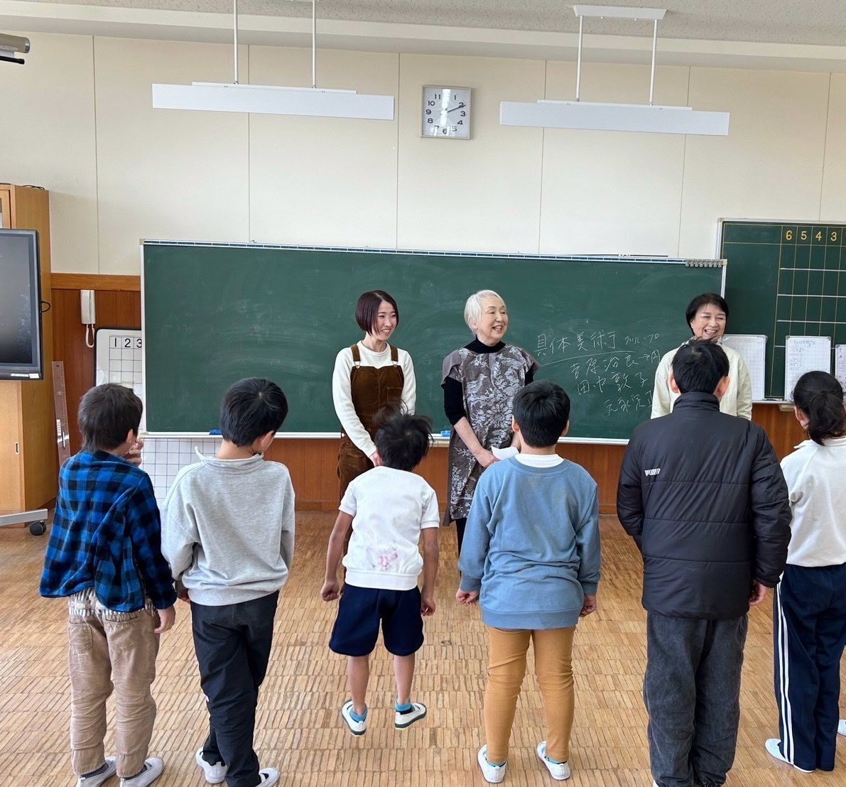 第8回目のワークショップは亀山東小学校の特別支援学級19名の子どもたちと共同制作。