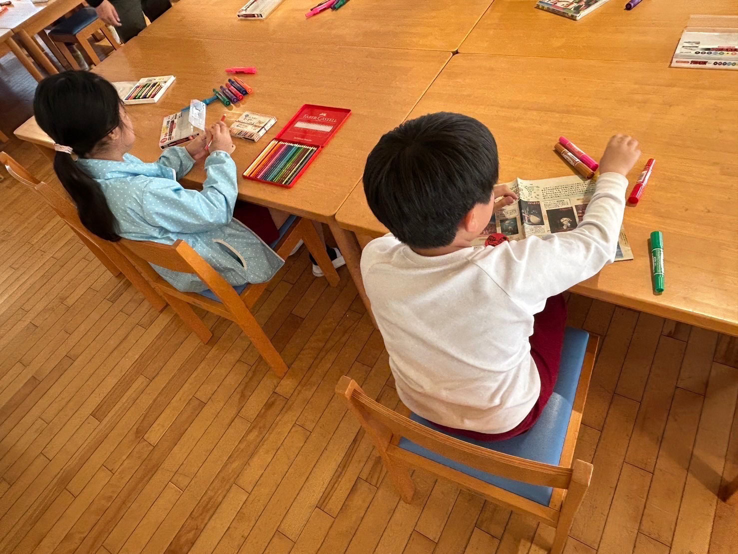 友だちと会話しながら描いている人。