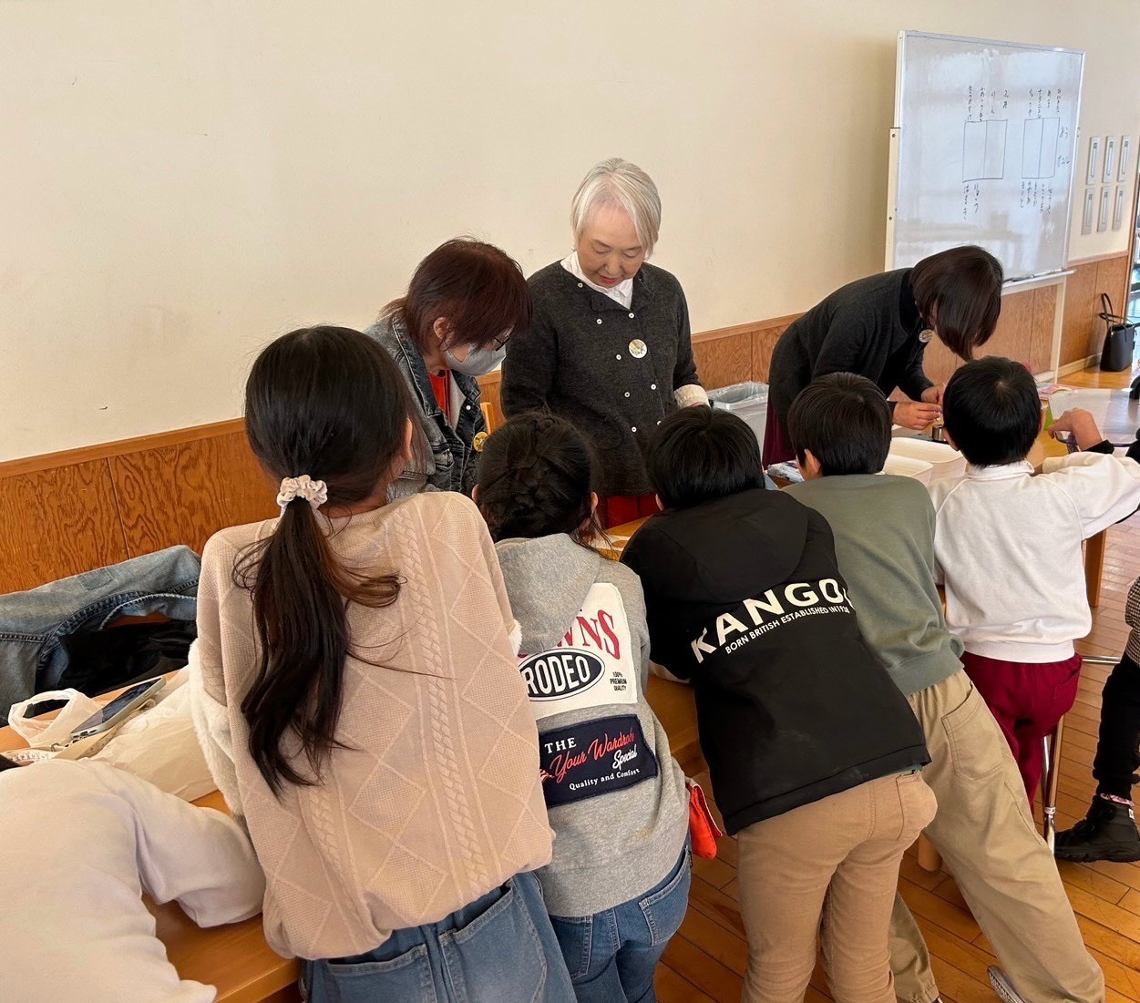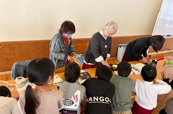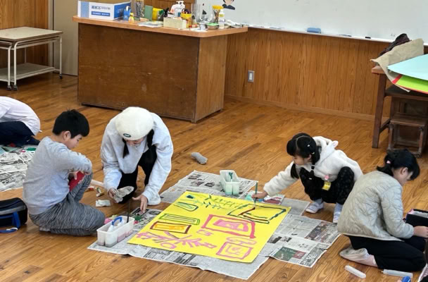 5回目のワークショップは亀山市立神辺小学校の特別支援学級7名の子どもたちと共同制作を行いました。