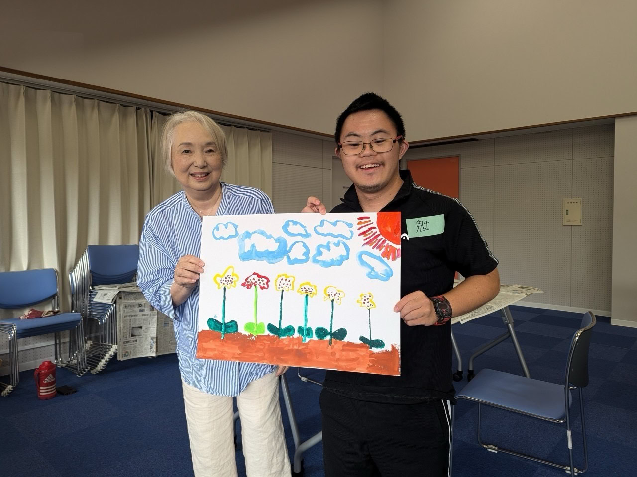 みんなで描いた絵を持って記念撮影。