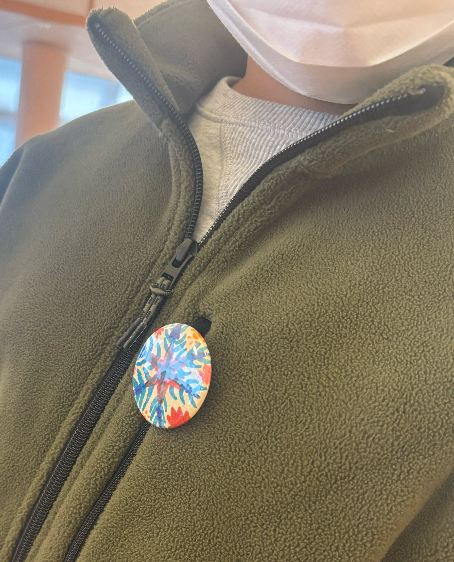 さっそく、胸につけて大喜び。