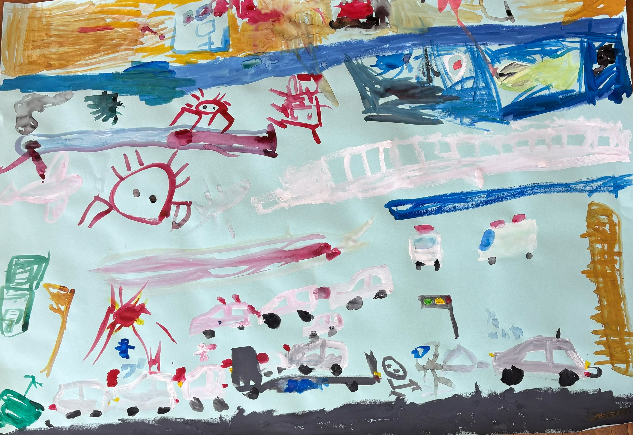 ハッとするような色の組み合わせと不思議で魅力的なフォルムが重なって、画用紙の上に素晴らしい世界が広がりました。