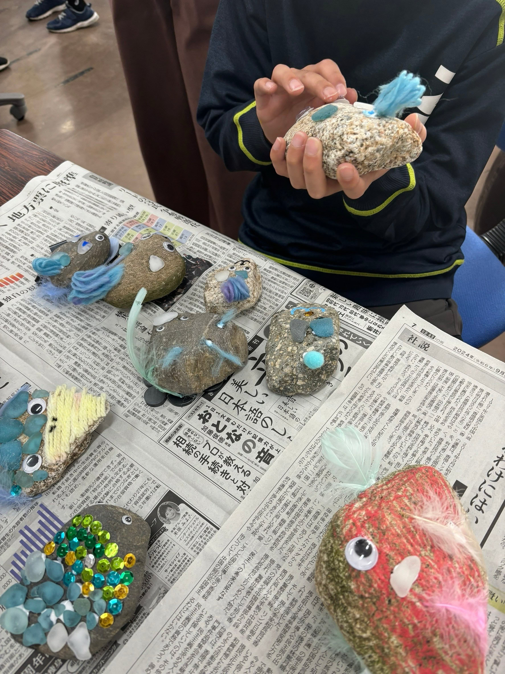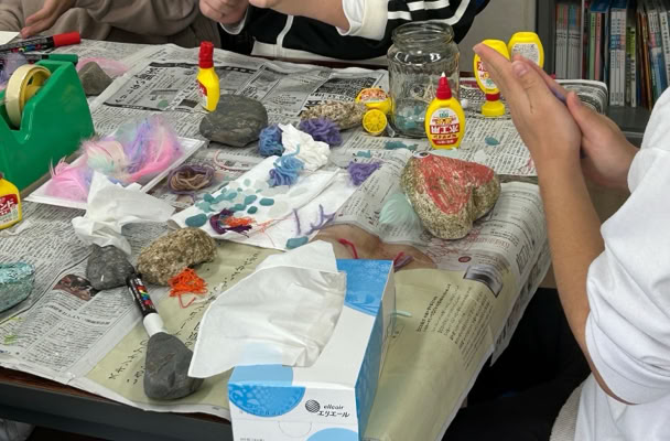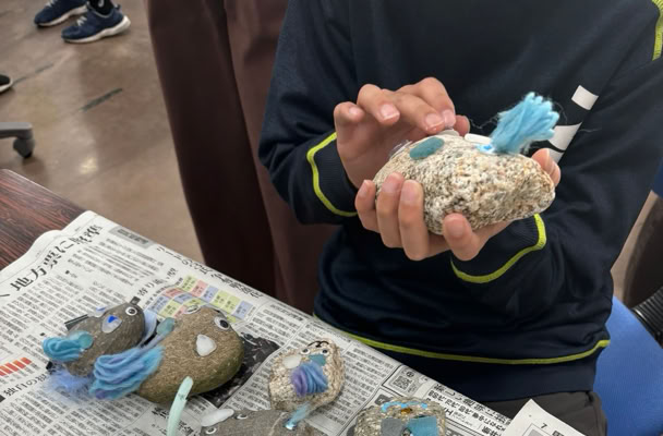 あらかじめ、拾ってきていただいた河原の石を使ってストーンアートを楽しみました。