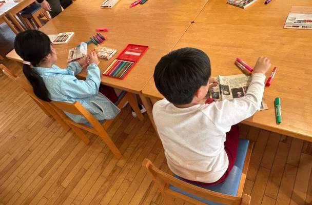 全紙(大判の色画用紙)を用いて大きな絵をみんなで描きました。