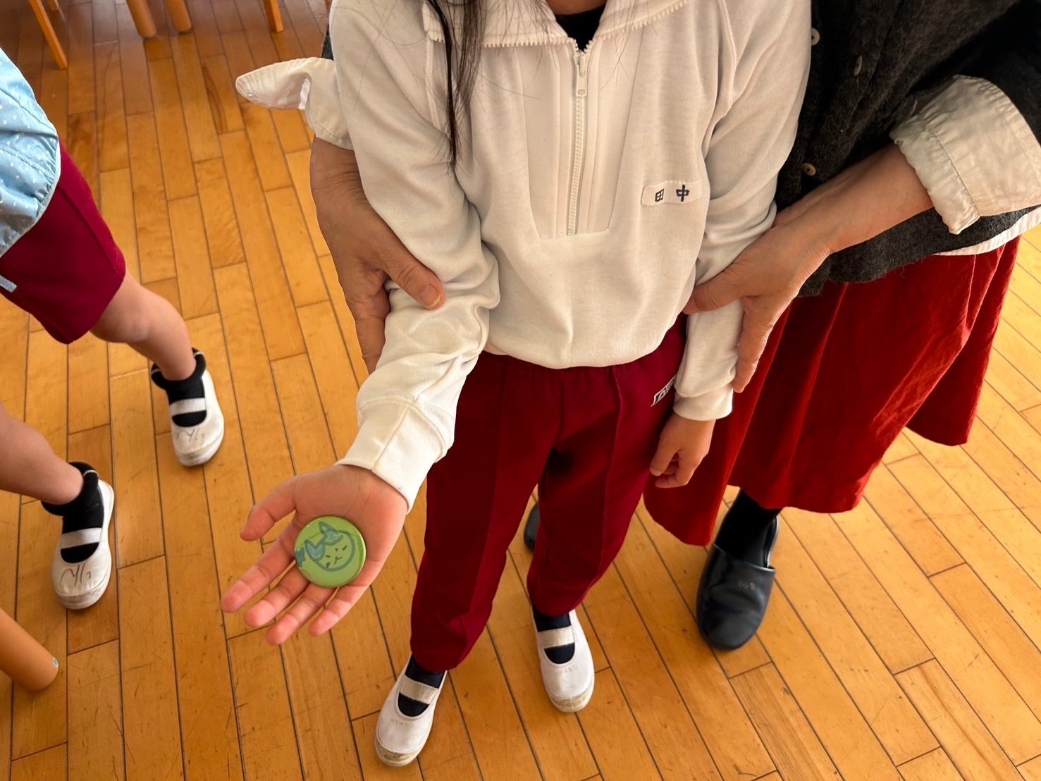機械から出来上がった缶バッジを渡した時の子どもたちの嬉しそうな笑顔!