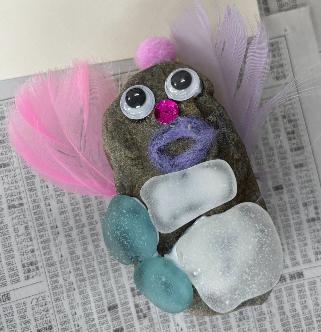 好きな色に、まず、目玉を付けて、、、あれあれ!もう可愛い生き物になりました。